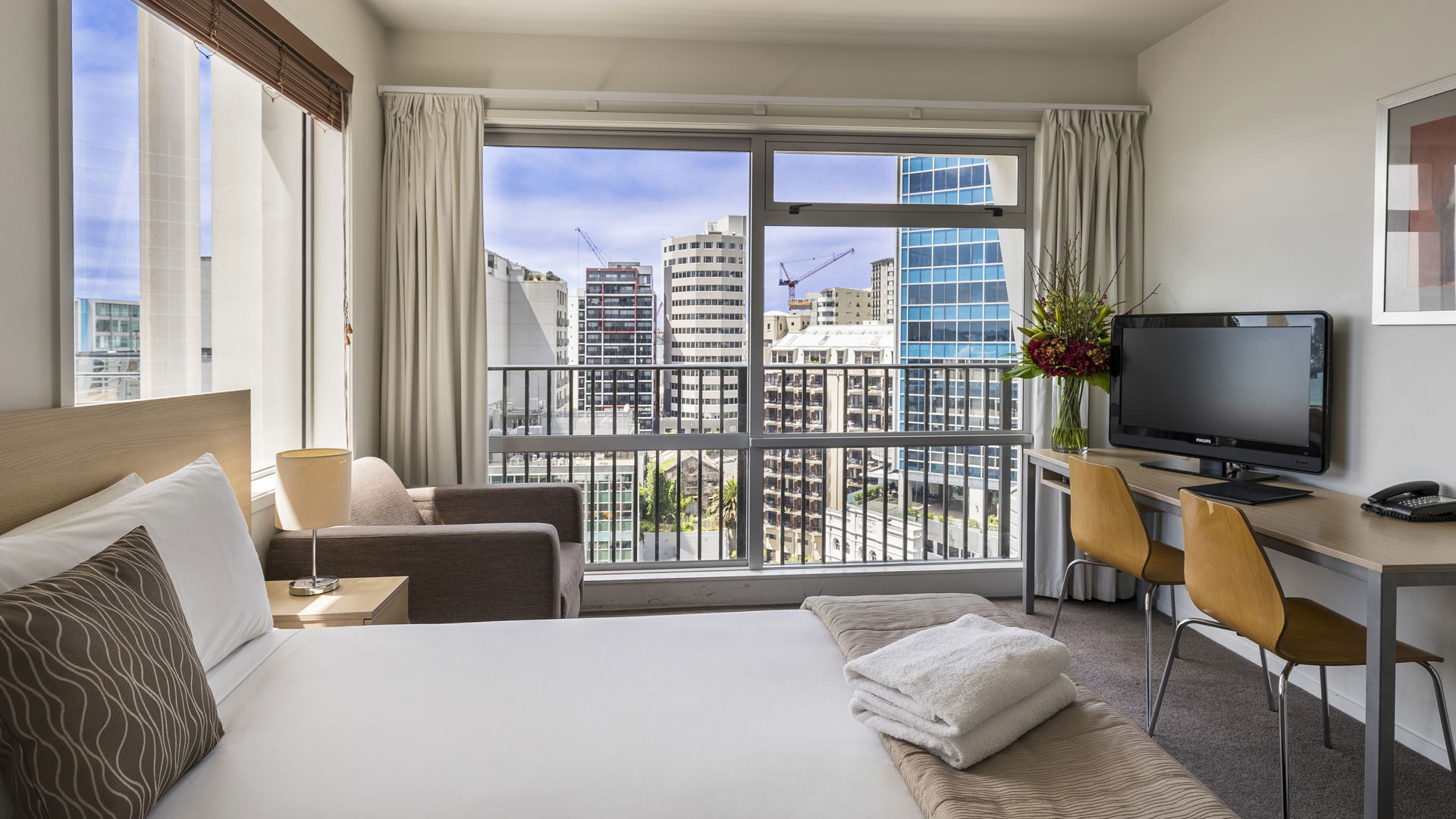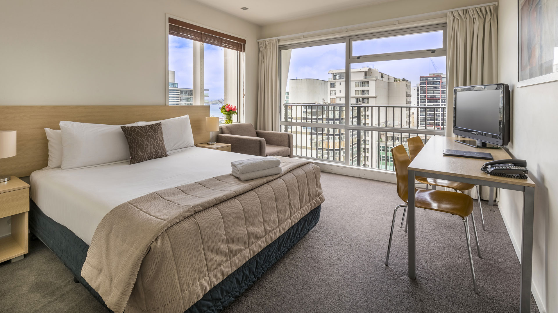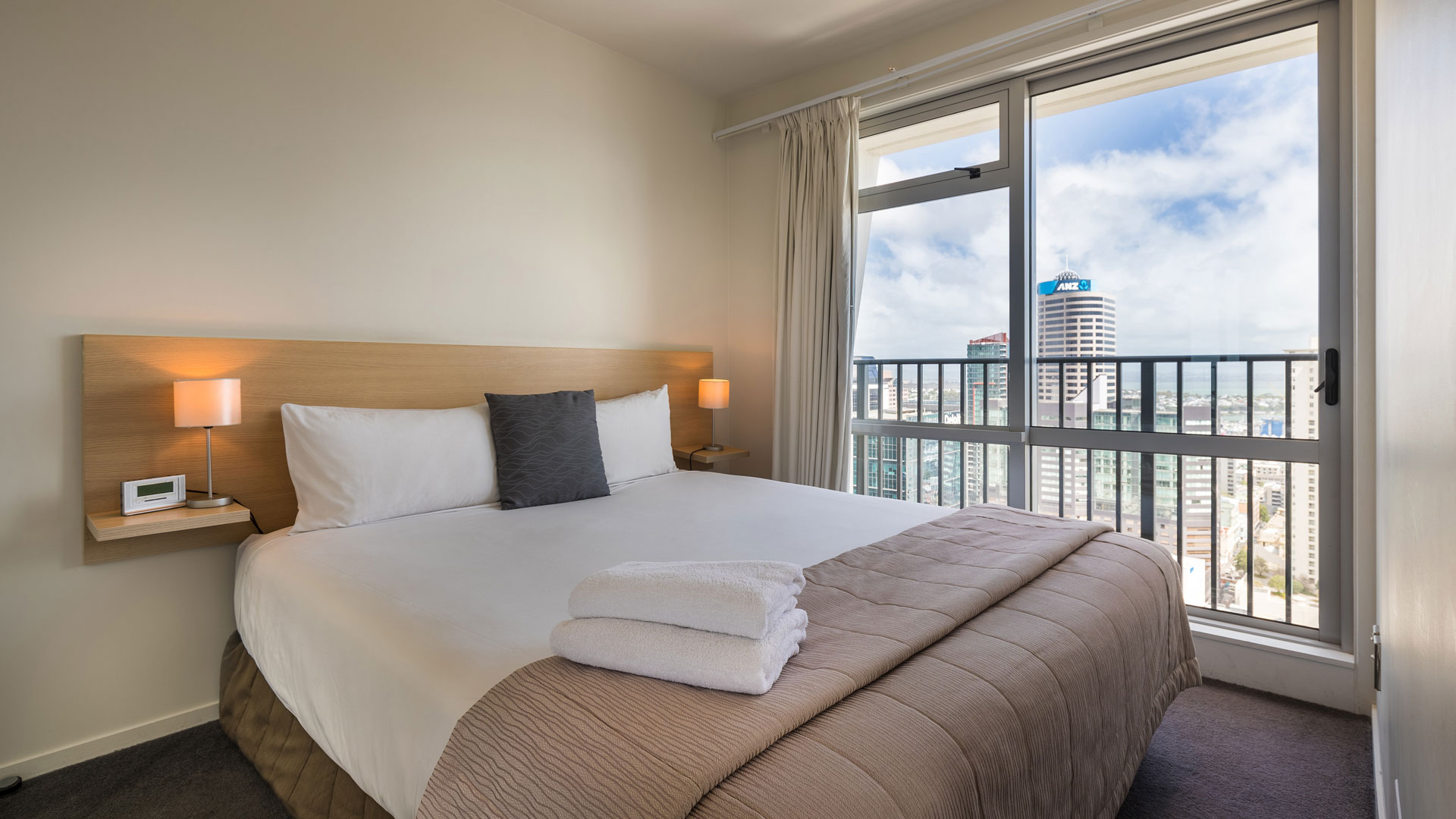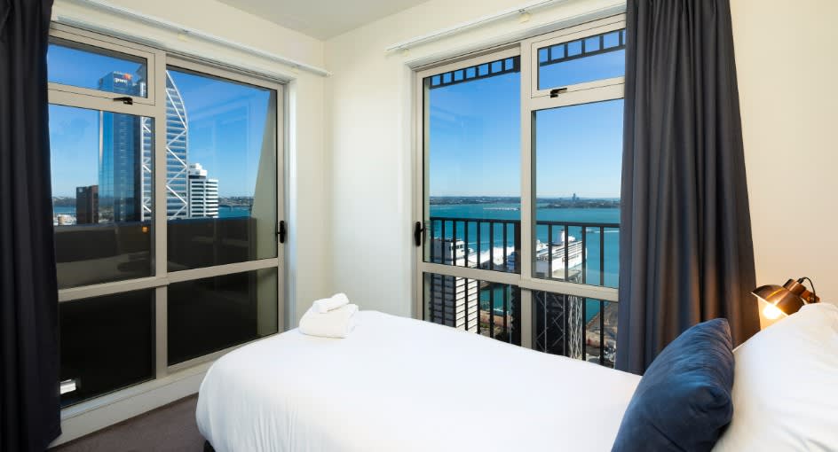 Take in the sweeping views of Auckland Harbour and the bustling city below from the tallest apartment tower in New Zealand