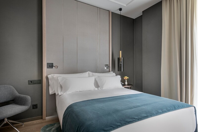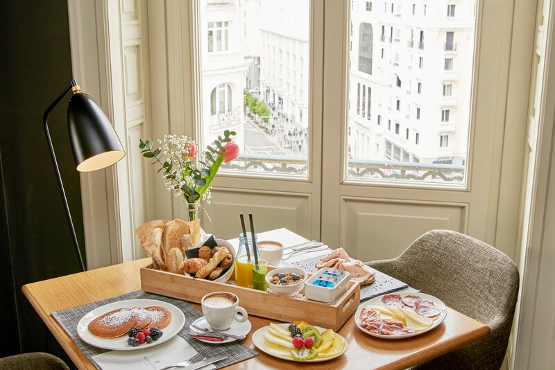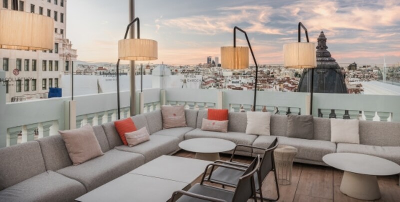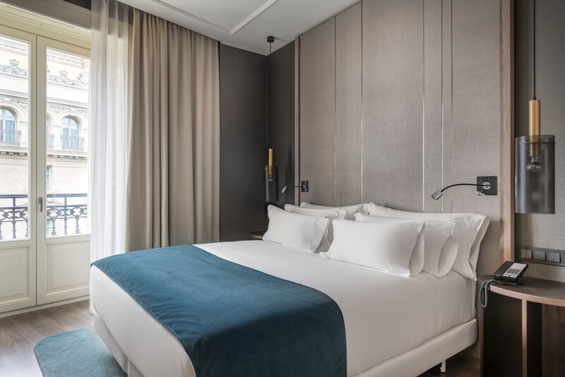 The newly opened NH Collection Madrid Gran Vía is in the heart of one of Madrid's most iconic streets. This city center hotel is in an ideal location for shopping at designer boutiques, as well as exploring Gran Vía's restaurants, coffee shops, book stores and cocktail bars. The hotel is within walking distance of Madrid's central attractions, including La Puerta del Sol, Plaza Mayor, Plaza España, Plaza de Cibeles and the Prado museum. It's also near Gran Vía underground station and around one hour from the airport.The hotel's 94 elegantly decorated rooms each have Nespresso machines and free Wi-Fi. Accommodation includes Superior rooms, Premium rooms and Junior suites. Guests will enjoy a refreshing night's sleep on new mattresses with a choice of pillows.Start the day with our a la carte breakfast, featuring international favorites including breads, pastries, fruit and hot dishes, as well as local specialties like Spanish sausage.One of the highlights of this Madrid city center hotel is the 8th floor roof terrace with spectacular views over Gran Vía, and watched over by the Titan god Atlas. Here you'll find the restaurant, Picalagartos, with a menu of Spanish classics with a twist. Bar service includes snacks and cocktails designed by top bartenders.