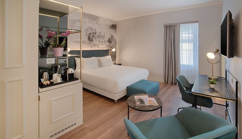 Stay in one of Rome’s most important archaeological areas when you choose the five-star NH Collection Roma Fori Imperiali. This brand new hotel is on the edge of the historic Imperial Forums site, and guests can enjoy stunning views of the ruins from selected rooms. The hotel is also convenient for Rome’s other major attractions, including the Colosseum and the Vatican, as well as being close to the restaurants and bars of Monti, and Rome’s main shopping areas. The hotel has 42 freshly decorated rooms, including superior rooms, premium rooms, Junior Suite, suites and accessible rooms. They all feature large flat-screen TVs with international channels, free Wi-Fi and coffee machines. A choice of pillows and super-comfortable mattresses assure a good night’s sleep. Guests start the day with eggs, fruit, pastries, cold meats and Italian specialities from the à la carte buffet, while the local pasta dishes and Mediterranean cuisine served in the hotel restaurant takes care of dinner. One of the hotel’s highlights is the beautiful terrace bar. On the top floor, it offers panoramic views of the Imperial Forums, churches and cityscape. Having a cocktail or aperitive here as the sun sets over the city is an experience never to be forgotten.