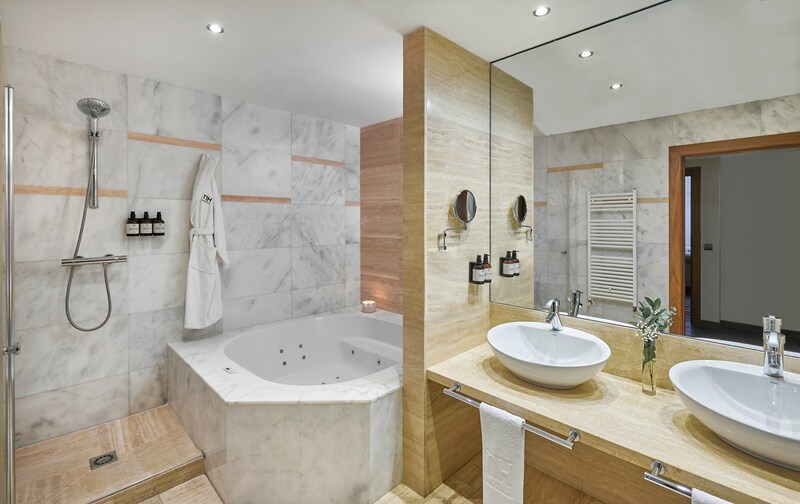 The NH Gran Hotel Casino Extremadura is a 5-star hotel located in a quiet area of Badajoz, just steps away from the Rio Guadiana river. The city center with its main attractions such as Badajoz Cathedral and Palmas Gate is a 10-minute walk from the hotel. It is also in a conveniently located for accessing the Madrid-Lisbon highway, as well as trains for surrounding areas. There are 58 spacious rooms at NH Gran Hotel Casino Extremadura. The decor is classic and elegant and features a cozy color scheme and smart wooden floors. Flat-screen TVs, free Wi-Fi, and pillow menus come as standard in every room. For extra space, there are connecting rooms or even Suites with a separate living room and a Jacuzzi. In the mornings, guests can enjoy our lavish breakfast buffet with spectacular river views. The Mirador del Guadiana restaurant serves up delicious local and regional meals, which you can also enjoy at the Casino restaurant along with a menu of light meals and snacks. There is also a lobby bar. The hotel offers guests many spaces to unwind such as the gym, as well as an outdoor terrace and a casino. There are 10 meeting rooms on-site.