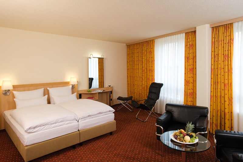A welcoming retreat for business, exhibition, and leisure travelers, NH Leipzig Messe has medieval, German, and European history right on its doorstep. Located in the Wiederitzsch area, hotel guests can enjoy short walks to the Leipzig Trade Fair, Congress Center Leipzig, and the Leipzig Messe Bahnhof station for trams to city center sites. A short drive or S-Bahn tram ride connects visitors with Zoo Leipzig, Gewandhaus Orchestra, and Hauptbahnhof Leipzig train station and shopping mall. Historic Nikolaikirche, Völkerschlachtdenkmal, and the 15th century restaurant, Auerbach’s Kellar, are also only a short distance from the hotel. Built with the business traveler in mind, the hotel boasts a staggering 19 meeting rooms, which can accommodate gatherings of up to 320 people. The facilities provide state-of-the-art audiovisual equipment and ample hospitality options. The hotel’s 308 warmly decorated rooms include tea and coffee-making facilities, free Wi-Fi, and flatscreen TVs. Some of the rooms offer garden views. The hotel hosts an extensive breakfast buffet that will satisfy all appetites and includes hot items cooked to order. The modern NH Leipzig Messe Restaurant serves lunch and dinner with a focus on German fare. The hotel bar invites guests to relax over regional beers, wine, and cocktails.