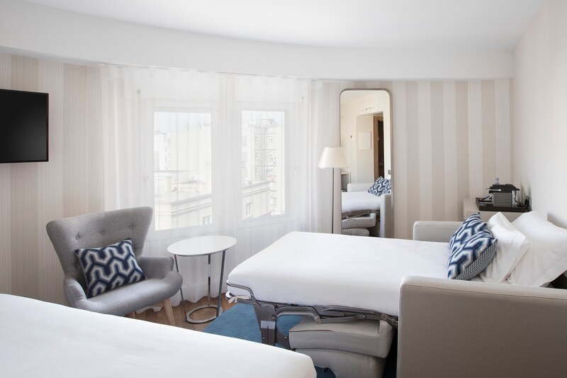 Set in the exclusive Salamanca district, the 4 star NH Madrid Balboa hotel gives guests premium access to designer shops and fine restaurants. The Paseo de la Castellana district is only steps away, as is the National Auditorium of Music, where you can hear world-class concerts. Take a stroll through the Retiro Park, which is less than 2km away, or hop on the metro at Avenida America and Nuñez de Balboa stations and visit the rest of Madrid’s attractions. The 111 rooms at NH Madrid Balboa are light and airy and feature hardwood floors. 13 of the rooms come with a private terrace with views over Madrid. A fresh breakfast buffet is served daily and offers a variety of sweet and savory dishes, including made-to-order eggs on weekdays and churros with chocolate - a local favorite. You can also catch up on the latest news by reading the newspapers on one of the comfy sofas. On Sundays, sleep in and enjoy breakfast until noon and the complimentary late check-out. The hotel has a gym for fitness fanatics, outdoor parking, and free Wi-Fi, as well as a restaurant, Saona, offering delicious dishes with a creative touch.