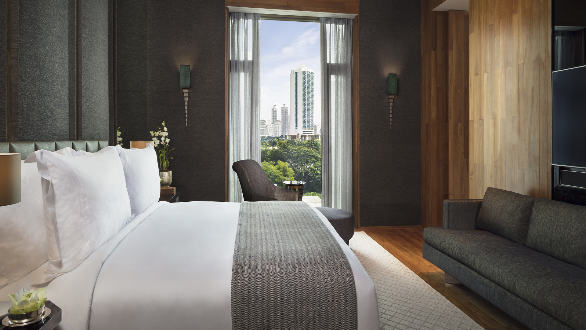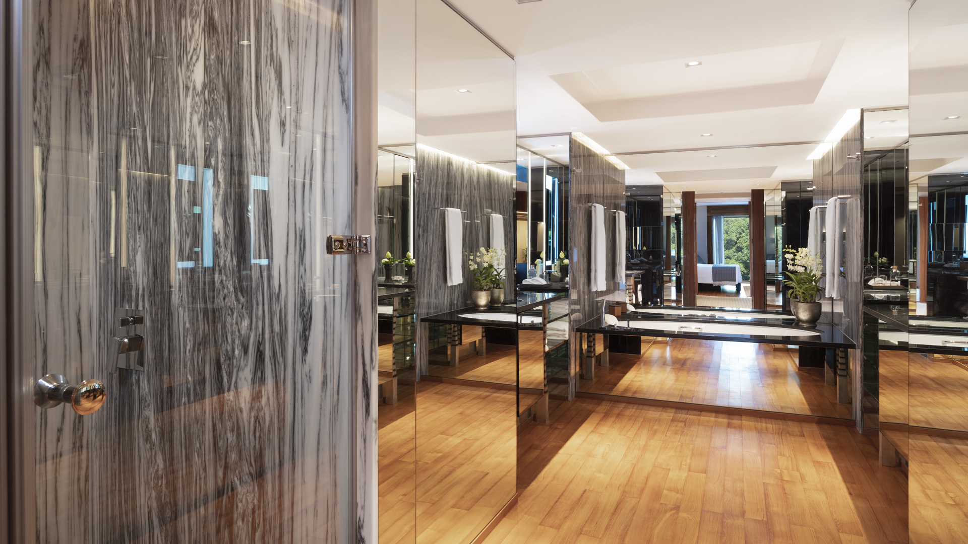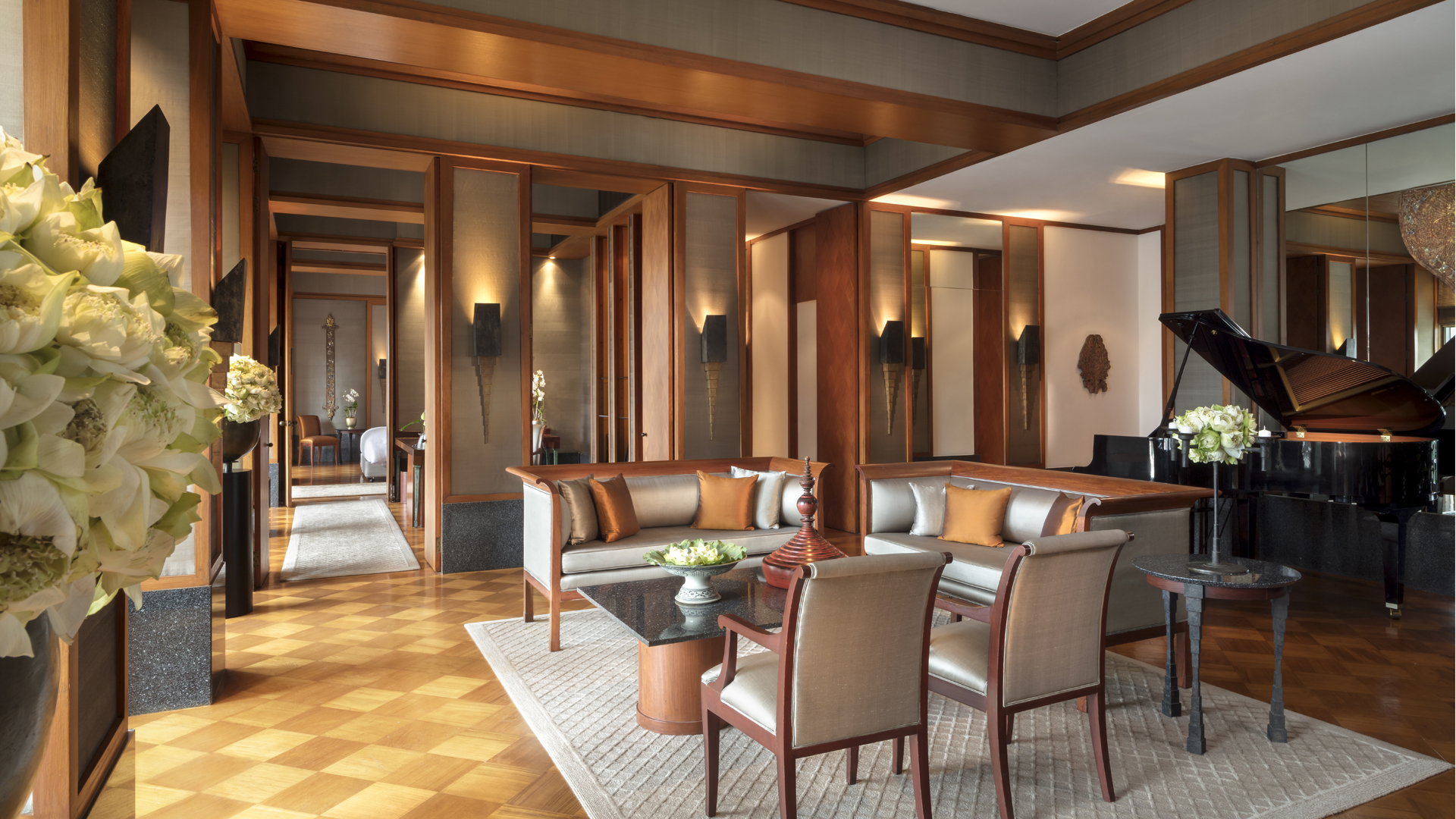 Bold architectural symmetry and the use of teak, granite, mirrors, glass, ceramics, metal and the finest Thai fabrics recall the palatial salons of the ancient capital, whilst incorporating the latest technology and comforts of the new millennium.