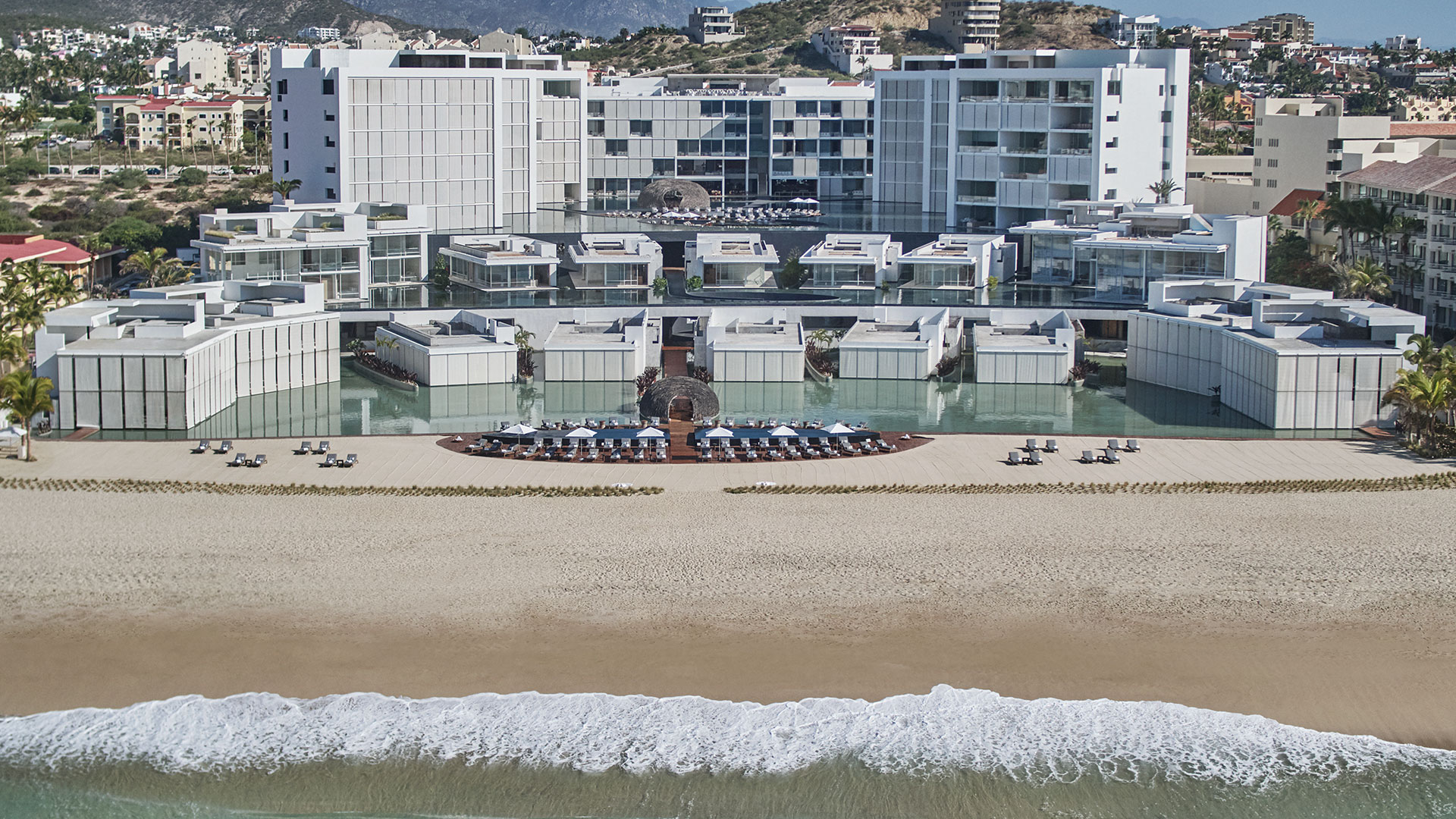 Water surrounds the entire 198-room masterpiece, wrapping around the pure white buildings which are connected by elevated walkways. Wander. Explore. Connect with nature. Beautiful terraces, five glistening pools, a white-sand beach, and indoor/outdoor luxury guestrooms, suites and casitas, and villas are yours to enjoy.