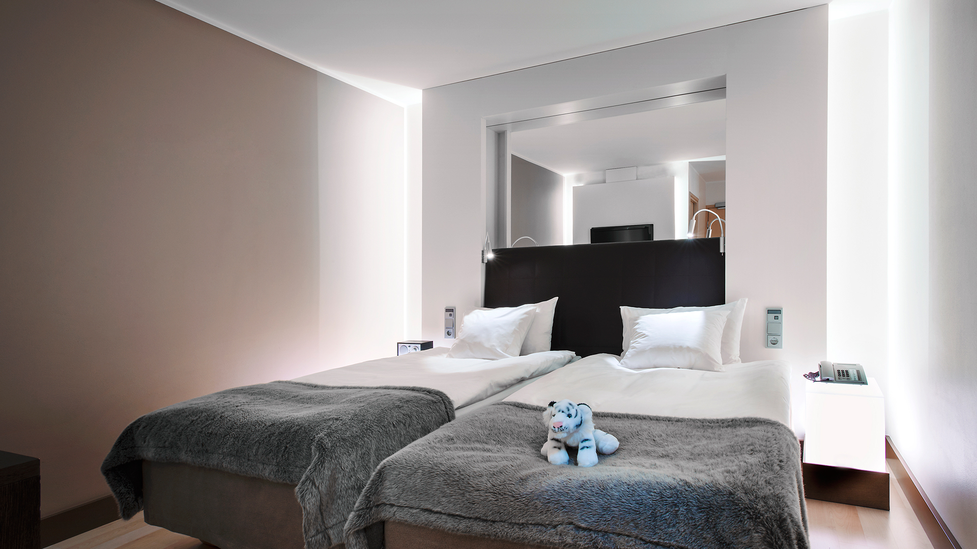 This luxury boutique hotel hosts a myriad of features including 97 self-contained, open-plan suites, two elegant penthouses, a 50 metre pool with a sundeck, a gymnasium, plus conference and event facilities. The guest experience is further complimented with onsite restaurant and bar, Tumbling Stone. lashings of Johnson's artwork ,inhouse art libraries and a dedicated art channel.